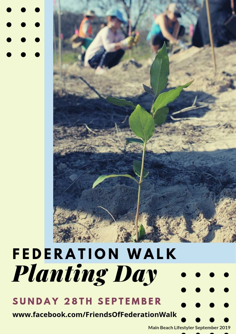 9am-10:30am – helping to improve conservation and recreational values of Federation Walk Coastal Reserve by planting 2000 native trees.