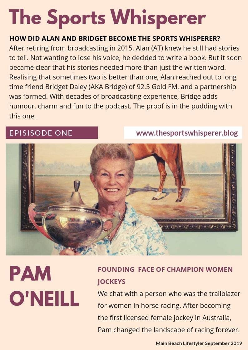 The first Podcast Episode is classic and rustic. A quality experience as you listen to Alan and Bridget tease out the memories, the struggles and the victories of this special woman now etched into the fabric of the once iron clad dominance of a male dominated sport. Pam has made a multi generational difference … hmmm best you listen in for yourself …